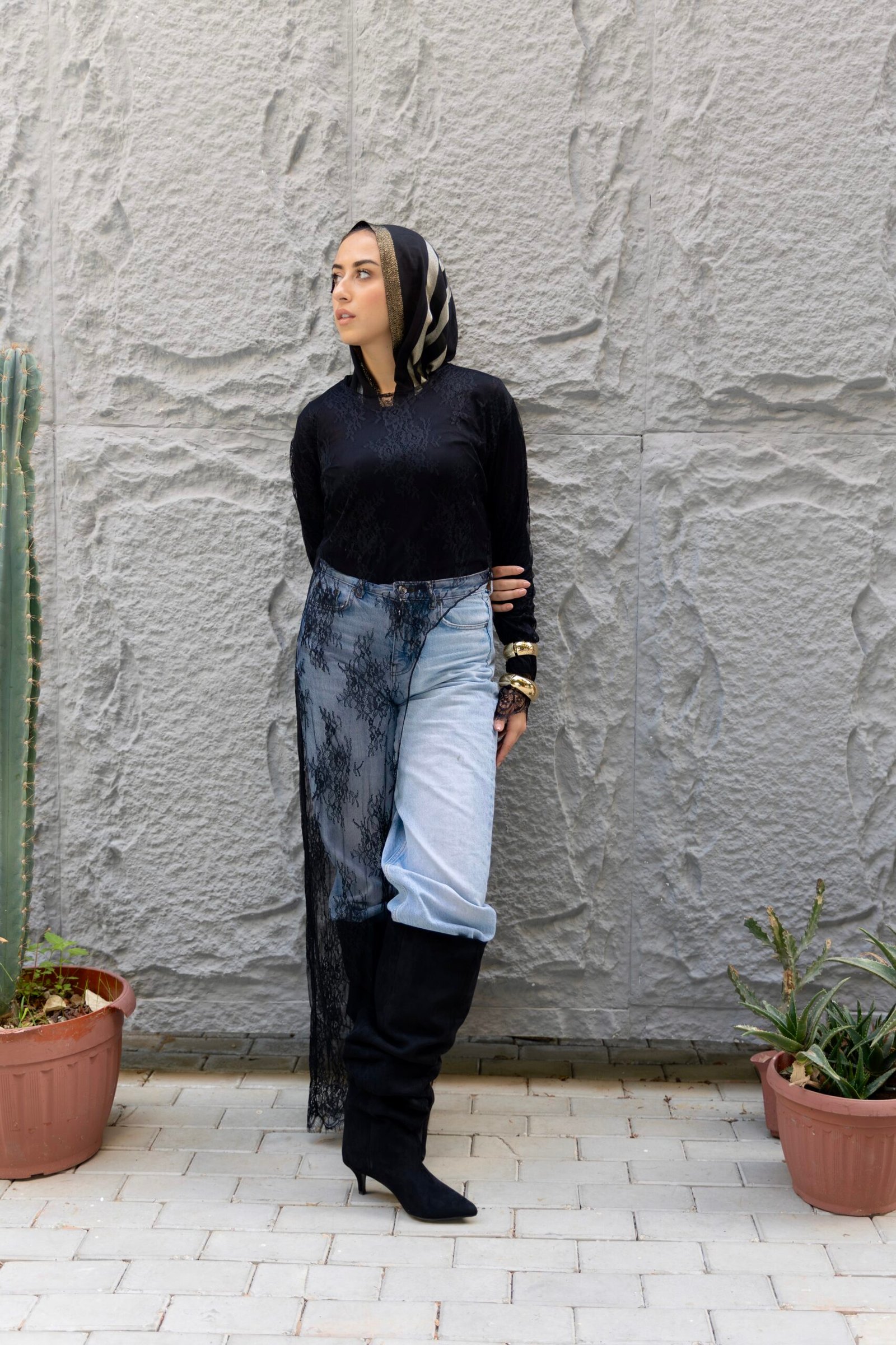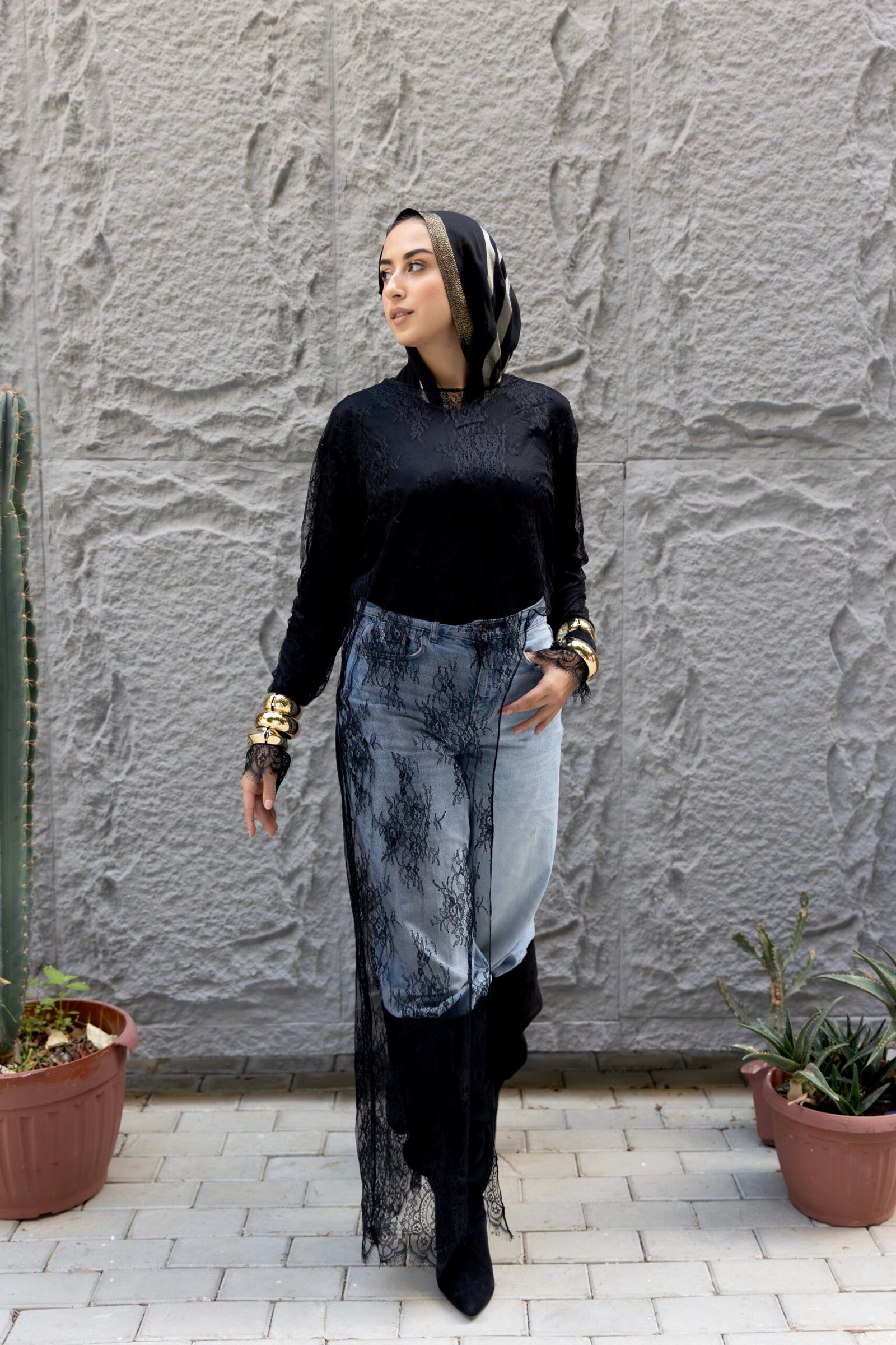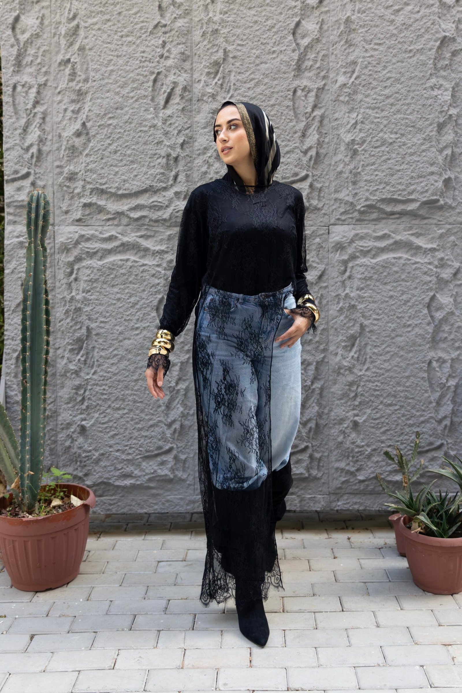 This high-low lace top is a sophisticated addition to your wardrobe, featuring delicate lace detailing that exudes elegance. The asymmetrical design adds a modern twist, offering a flattering silhouette that works for both casual and semi-formal occasions. Crafted with breathable fabric, it ensures comfort while making a stylish statement. Perfect for pairing with jeans, skirts, or trousers for a refined, feminine look.