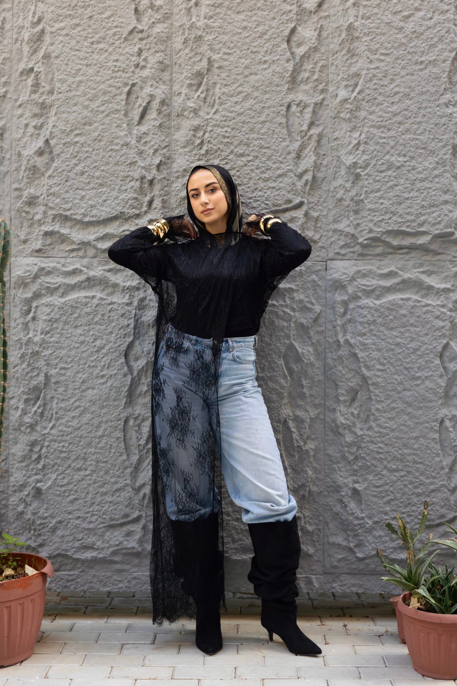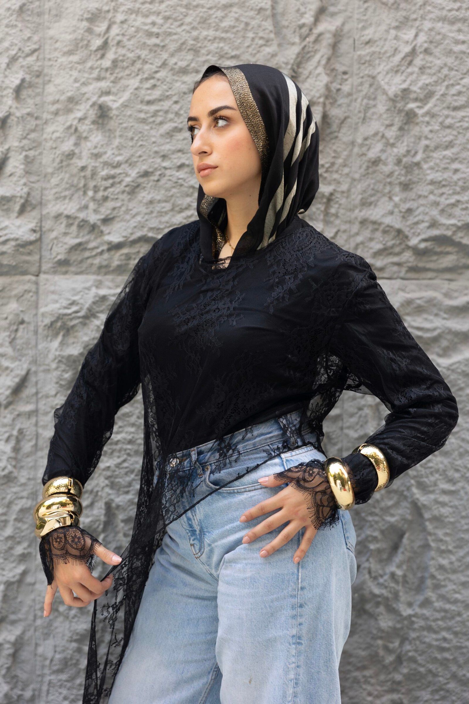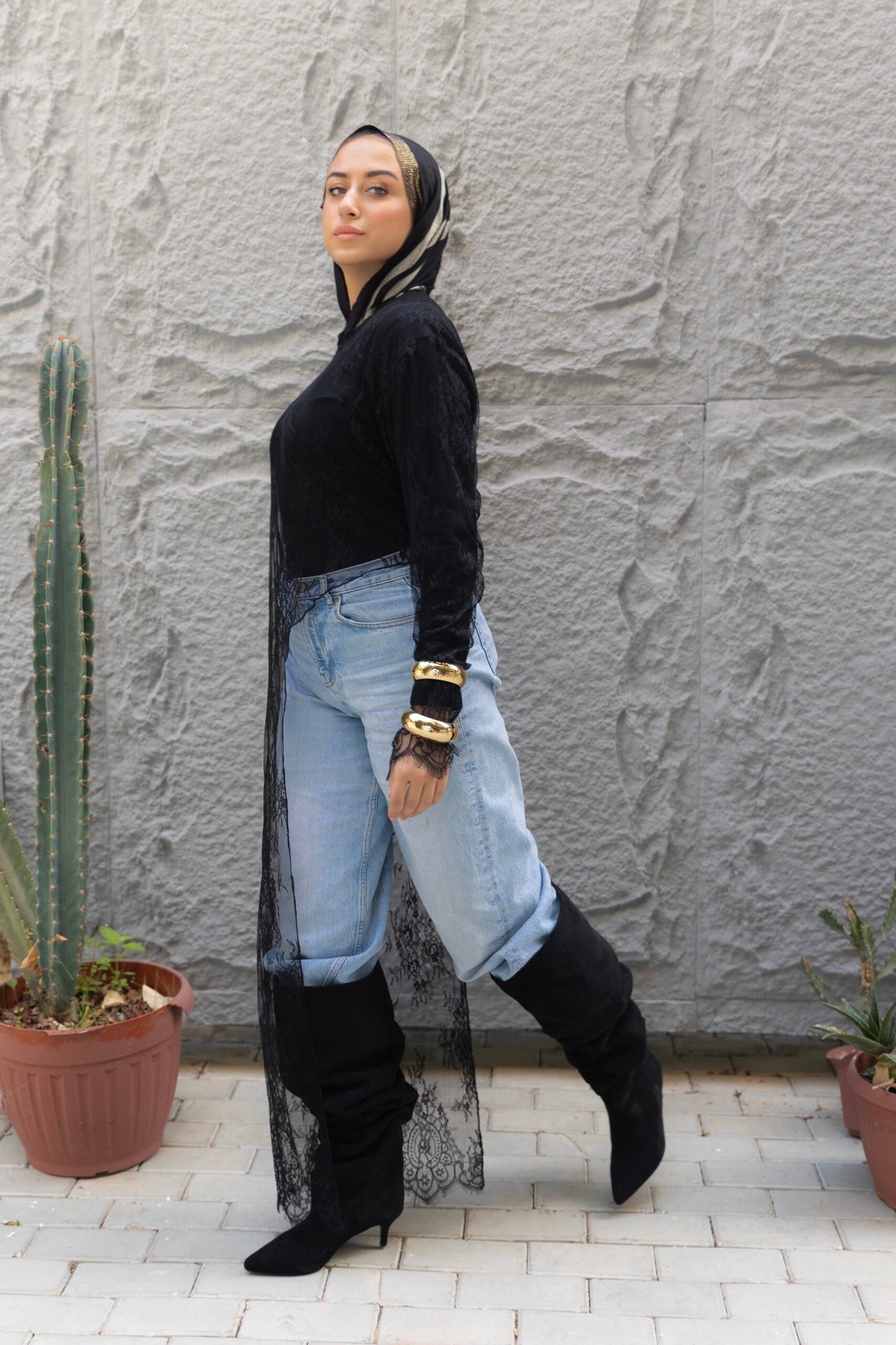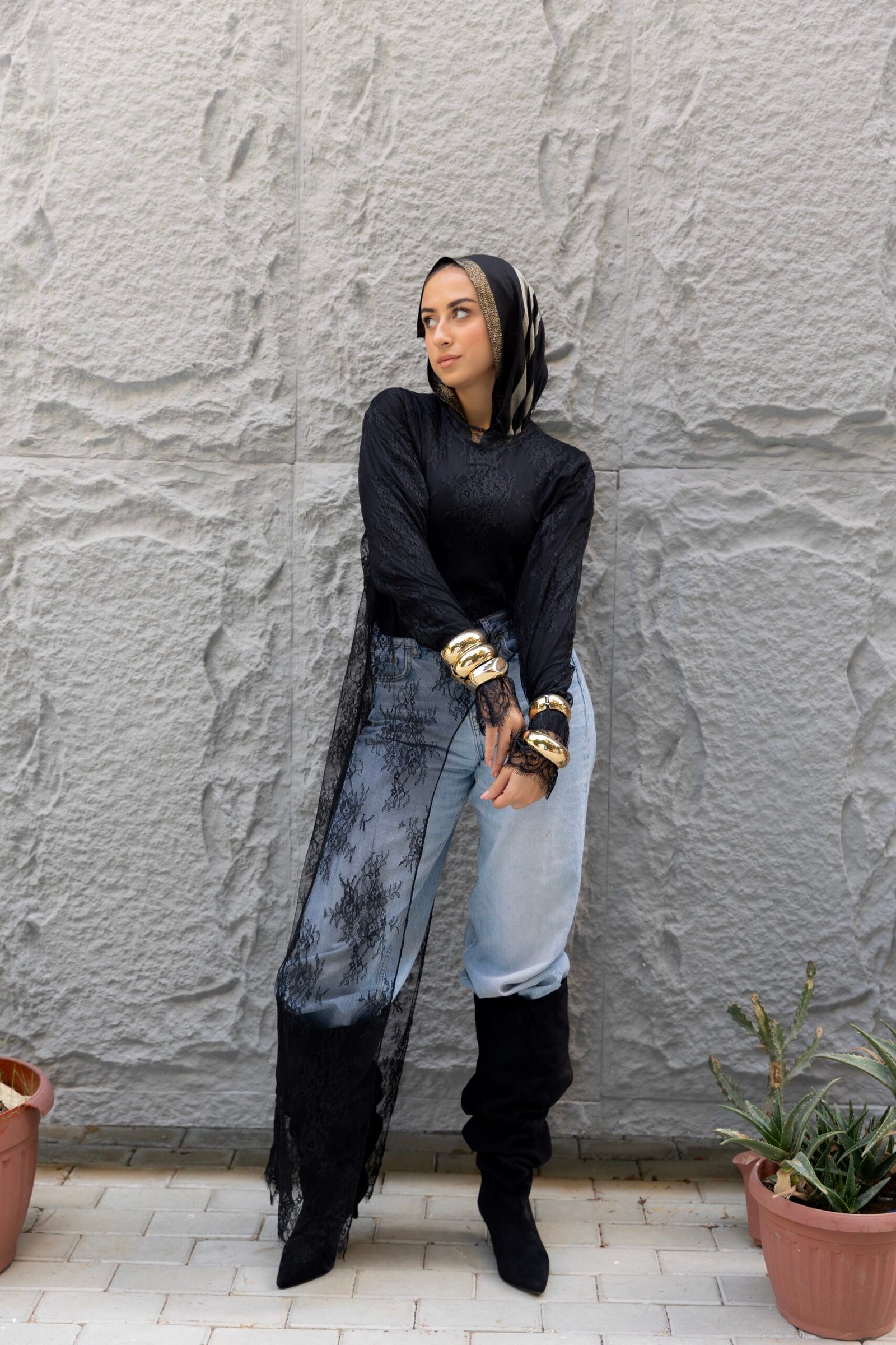 This high-low lace top is a sophisticated addition to your wardrobe, featuring delicate lace detailing that exudes elegance. The asymmetrical design adds a modern twist, offering a flattering silhouette that works for both casual and semi-formal occasions. Crafted with breathable fabric, it ensures comfort while making a stylish statement. Perfect for pairing with jeans, skirts, or trousers for a refined, feminine look.