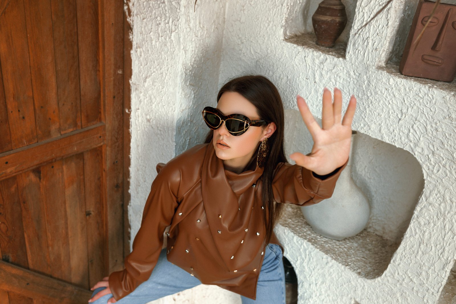 A modern twist on casual glam — these studded faux-leather tops in rich brown and classic black pair effortlessly with denim. Designed for bold souls who own their style, whether solo or side by side.